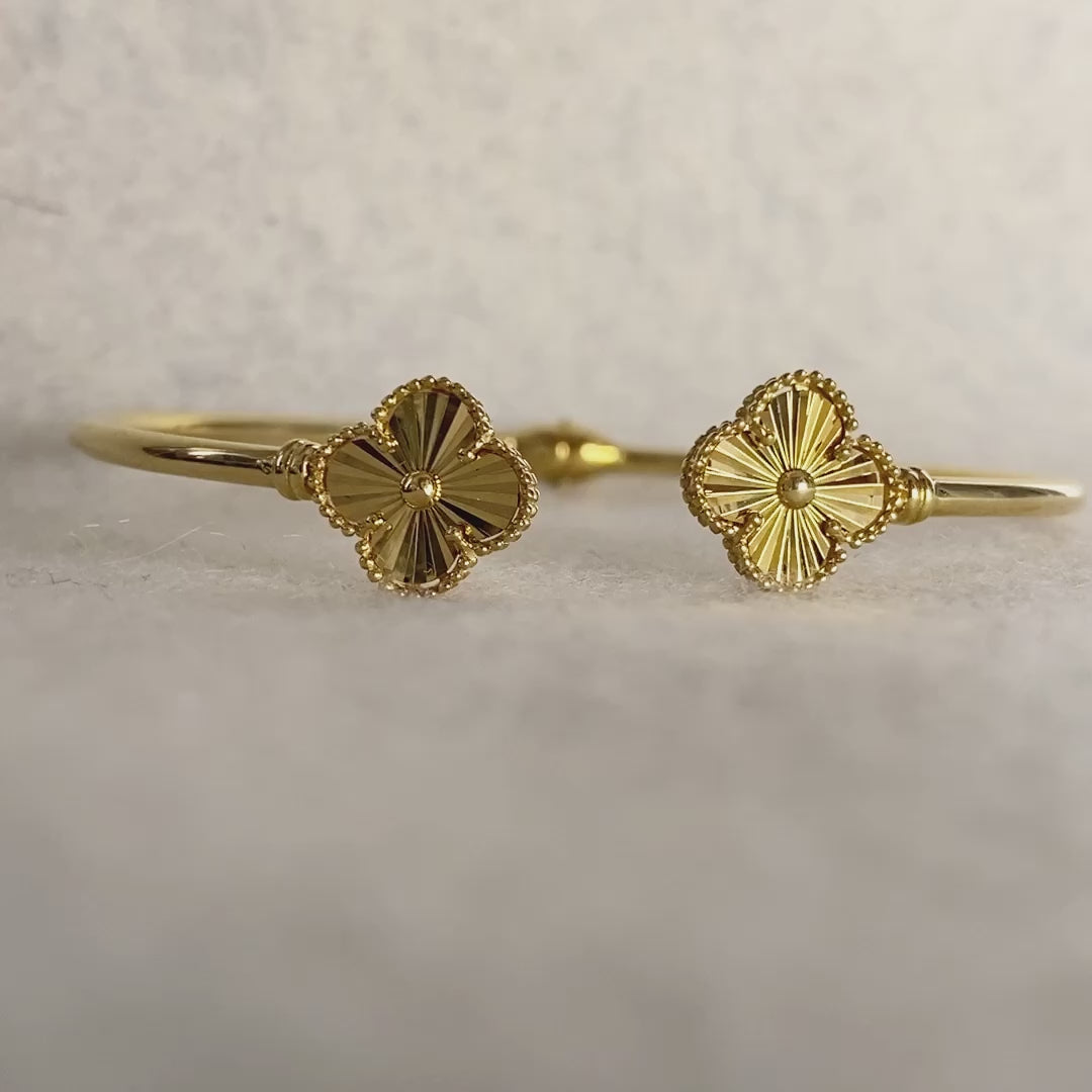 Add timeless elegance to your collection with our 18K Gold Four-Leaf Clover Bangle. Crafted from real 18k gold, this classic piece is perfect for any occasion.
