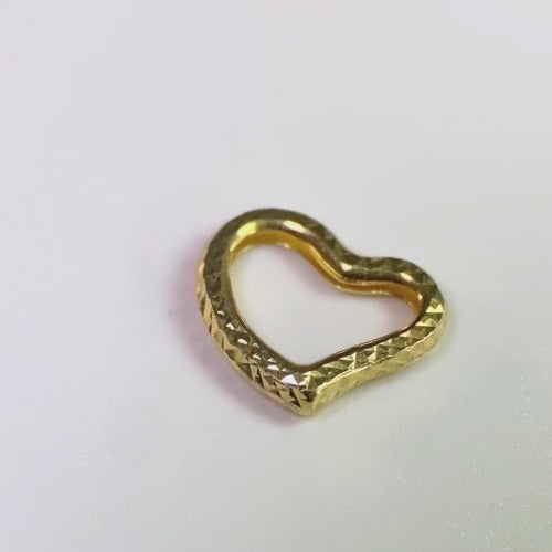 18k Solid Gold Dia Cut Open Heart Pendant Charm