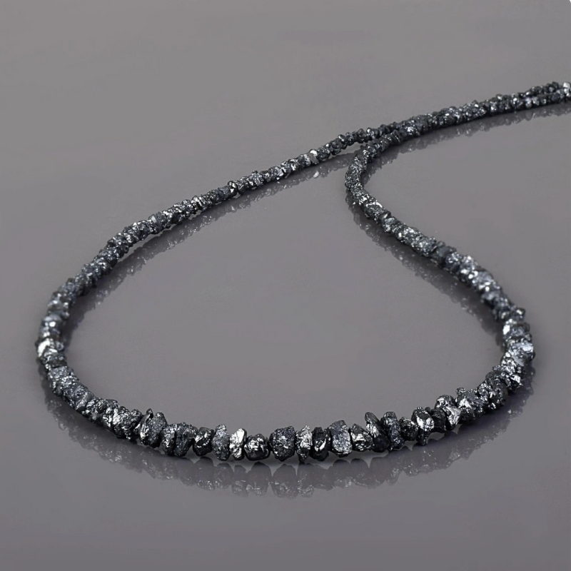 Discover timeless elegance with our Noir Collection Black Diamond Bead Necklace. Hand-threaded with intention, this striking piece features genuine black diamond chips, celebrated for their unique sparkle and sophistication. Accented by solid 18k gold beads and clasps, it embodies luxury and refinement in every detail.