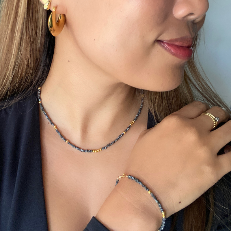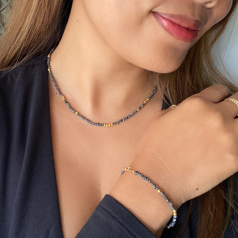 Noir Stellar Black Diamond and 18k Solid Gold Beads Bracelet